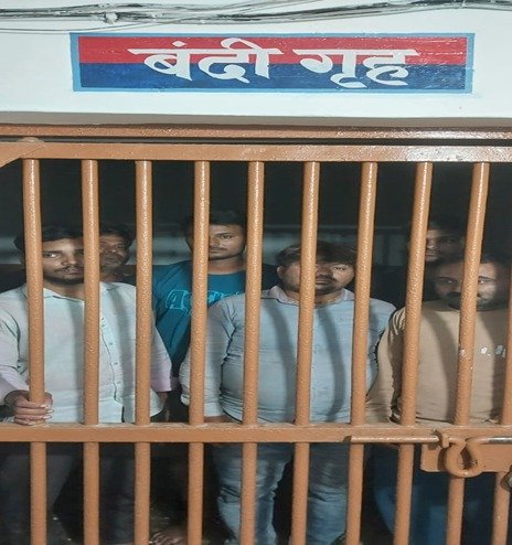 जौनपुर – थानाध्यक्ष जफराबाद के नेतृत्व में उ0नि0 राधेश्याम सिंह व म0उ0नि0 मिथिलेश कुमारी मय पुलिस बल के साथ देखभाल क्षेत्र के दौरान पुरानी रंजीश को लेकर मारपीट होने पर थाना स्थानीय पर मु0अ0सं0-227/25 धारा–115(2)/352/351(3)बीएनएस व मु0अ0सं0-228/25 धारा-115(2)/352/351(3) बीएनएस पंजीकृत किया गया । अपितु पुनः शान्ति भंग की प्रभल सम्भावना के दृष्टिगत प्रथम पक्ष के 1 आकाश निषाद पुत्र रामाज्ञा निषाद नि0 नावघाट थाना जफराबाद जौनपुर उम्र 19 वर्ष तथा दितीय पक्ष के 1.अमित गिरी पुत्र आशीष गिरी नि0 दरीबा थाना जफराबाद जौनपुर उम्र 18 वर्ष 2. अजय कुमार गिरी पुत्र कैलाशनाथ गिरी नि0 दरीबा थाना जफराबाद जौनपुर उम्र 37 वर्ष 3. विकाश कुमार गिरी पुत्र जवाहरलाल गिरी नि0 दरीबा थाना जफराबाद जौनपुर उम्र 30 वर्ष 4. रोहन गिरी पुत्र कैलाश नाथ गिरी नि0दरीबा थाना जफराबाद जौनपुर उम्र 30 वर्ष 5.अतुल गिरी पुत्र कैलाश नाथ गिरी नि0 दरीबा थाना जफराबाद जौनपुर उम्र 34 वर्ष को अन्तर्गत धारा 170/126/135 बीएनएसएस मे गिरफ्तार कर मा0 न्यायालय पेशी हेतु भेजा जा रहा है।